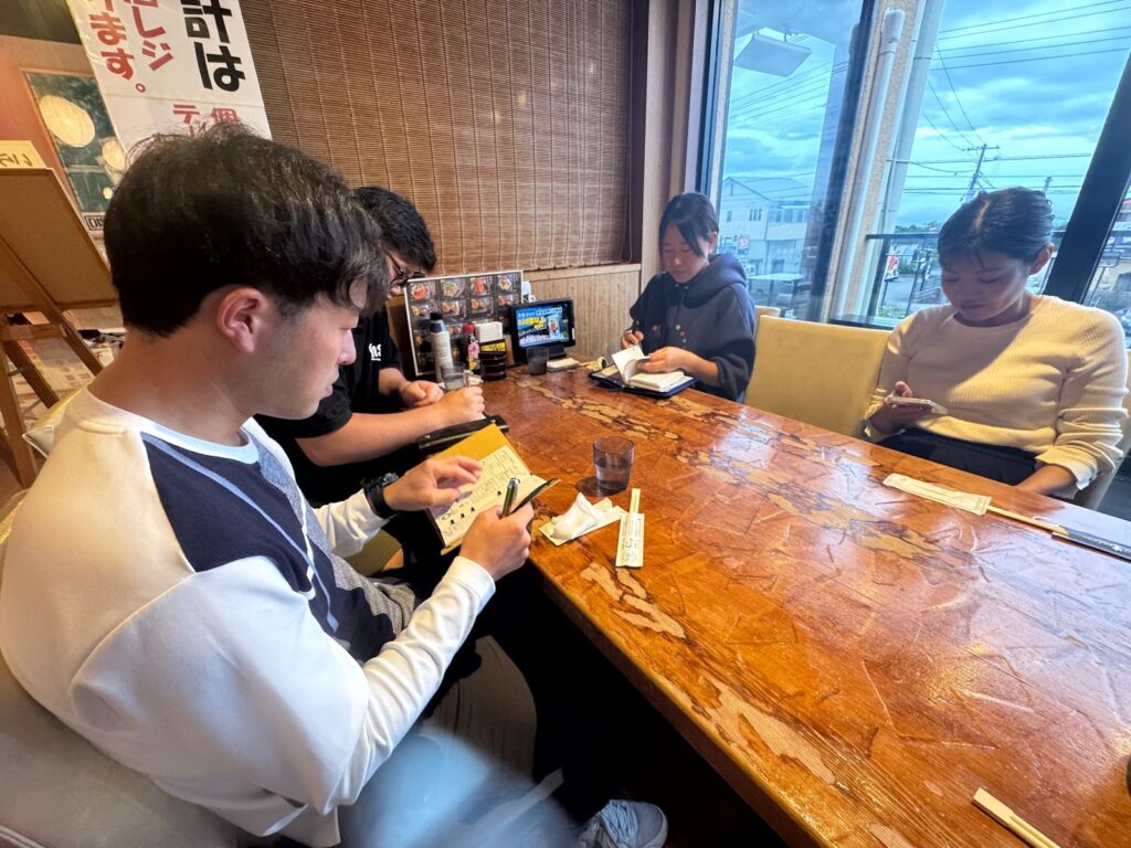 皆さん何を頼むか迷われていましたが注文が終わりご飯を待つ間にログ付け📝